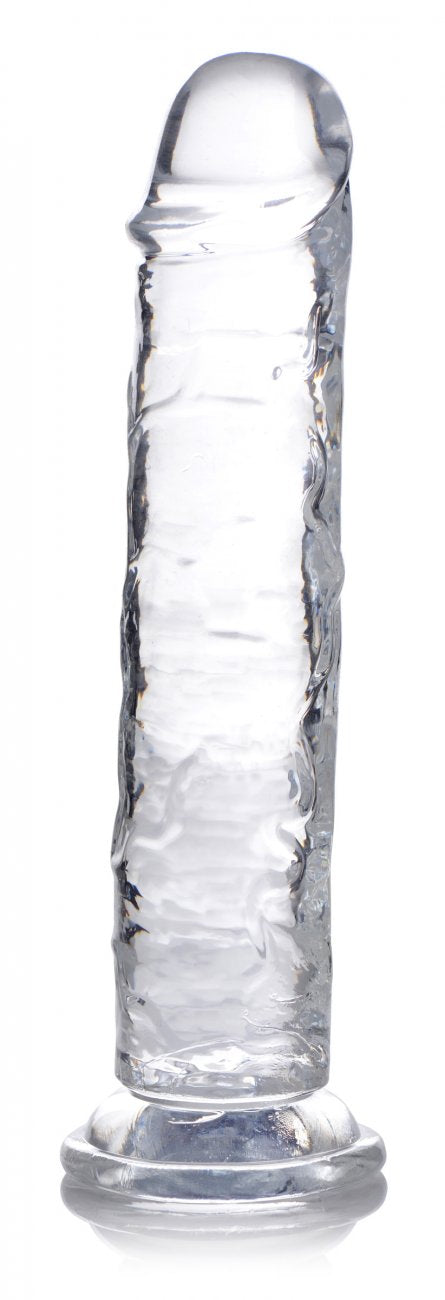 Crystal clear, ultra realistic, and exceptionally low maintenance for no-nonsense fun! This slim transparent shaft provides a satisfying meaty density from tip to base, featuring realistic hand-crafted details for your eyes and your insides to enjoy!